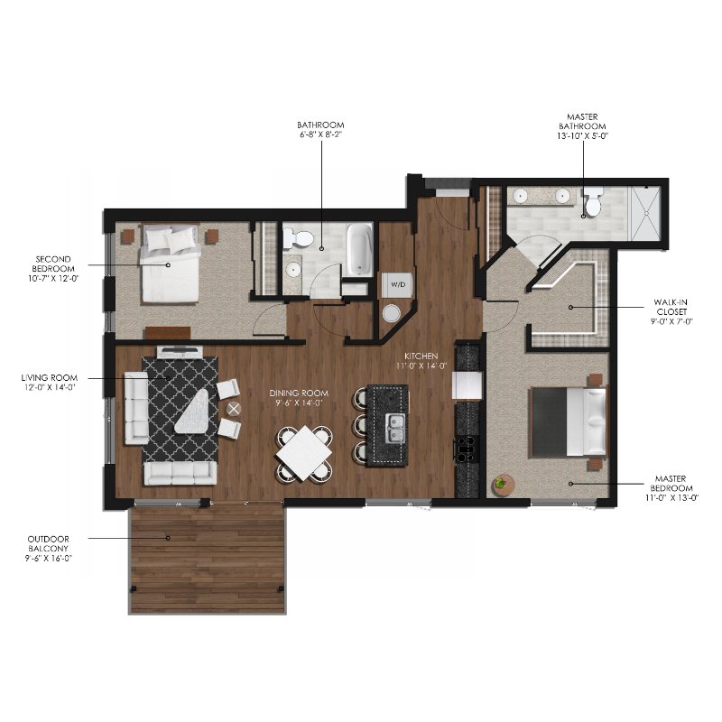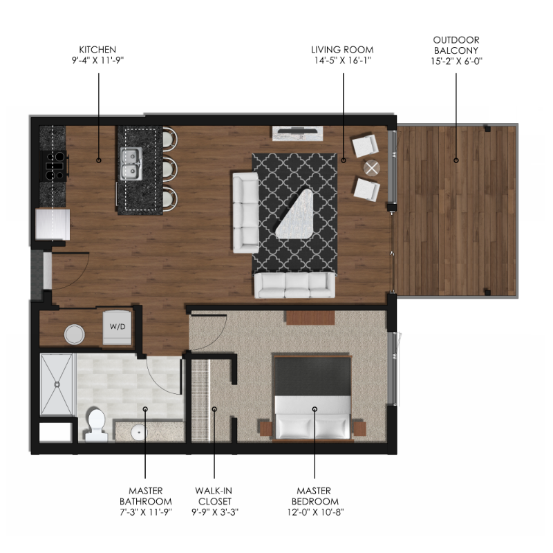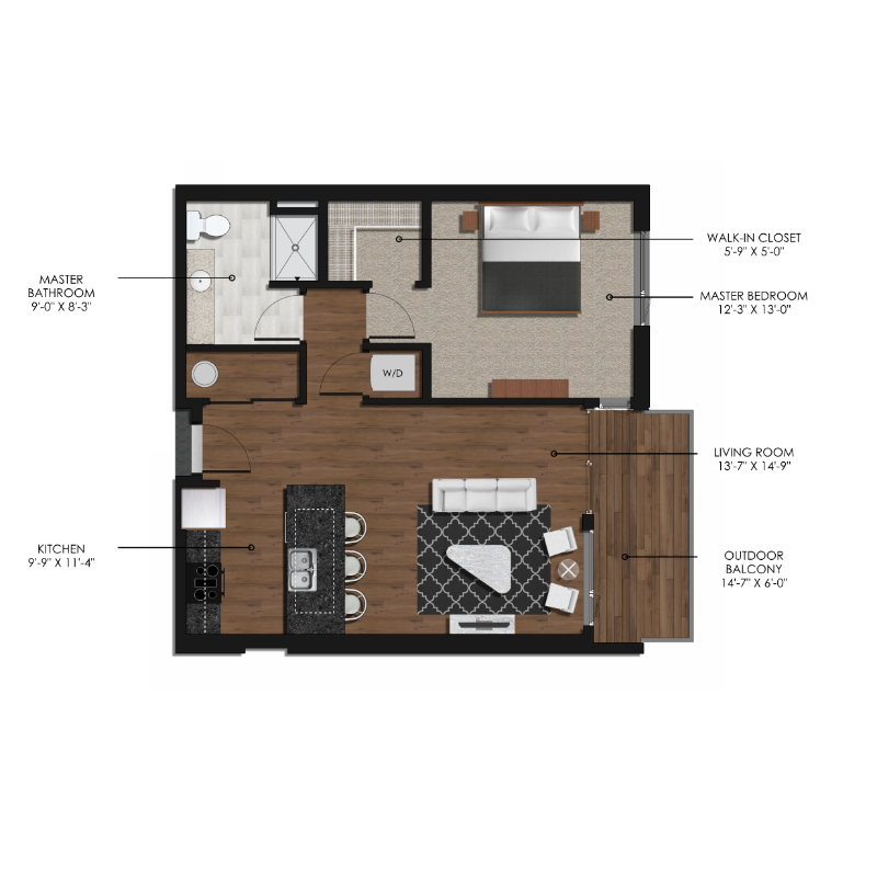 1 Bedroom 1 Bathroom 700 S.F. Flare Units: 211-212-311-312