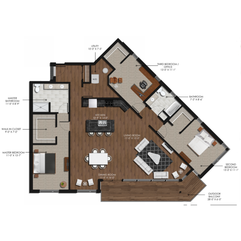 3 Bedroom 2 Bathroom 1,720 S.F. Flare Units: 202-302