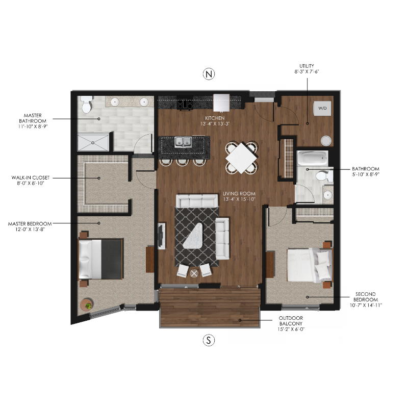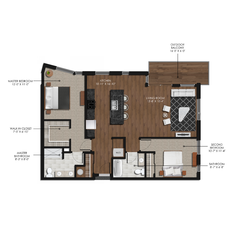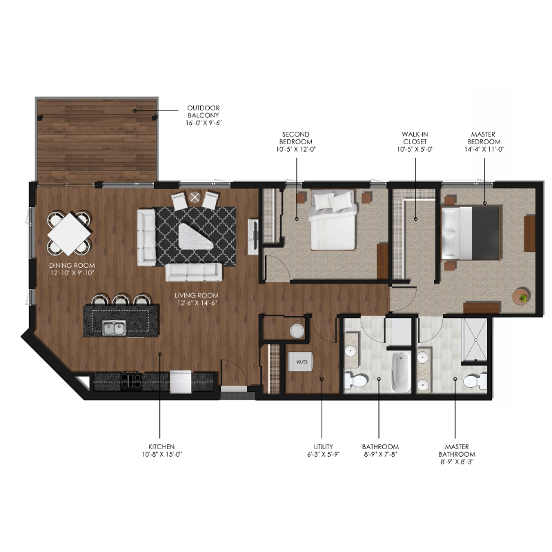 2 Bedroom 2 Bathroom 1,270 S.F. Forge Units: 212-312-412 Flare Units: 201-301