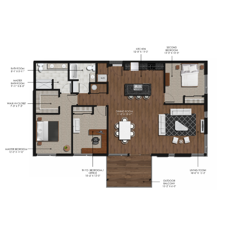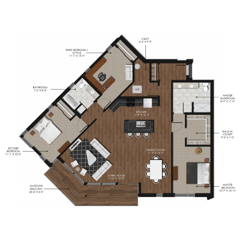 3 Bedroom 2 Bathroom 1,600 S.F. Forge Units: 211-311-411