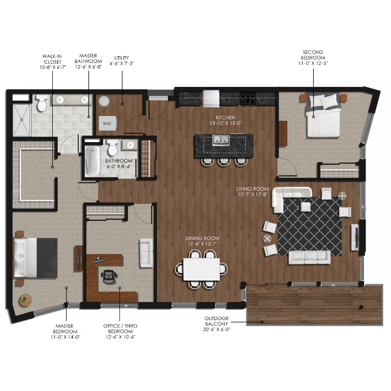 3 Bedroom 2 Bathroom 1,440 S.F. Forge Units: 202-302-402