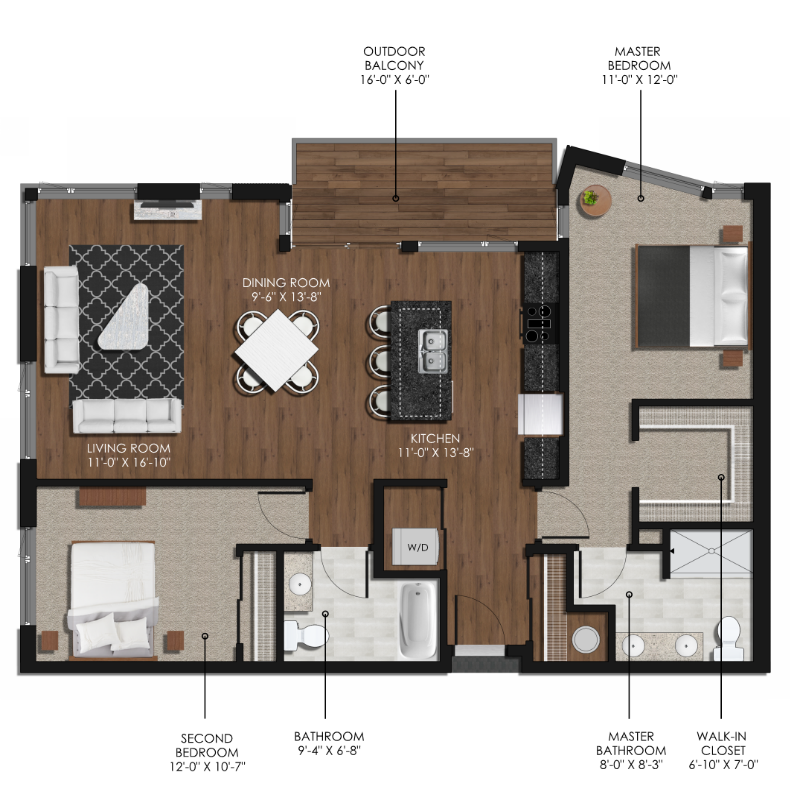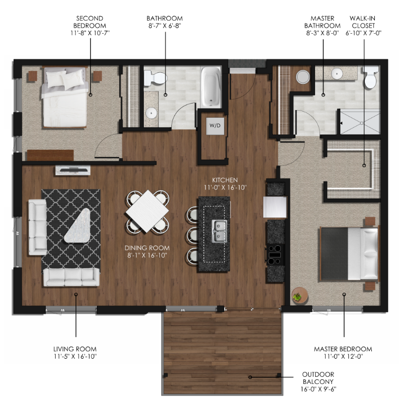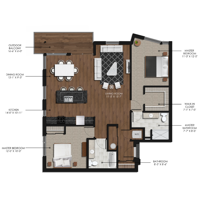 2 Bedroom 2 Bathroom 1,160 S.F. Forge Units: 203-303-403 Flare Units: 210-310